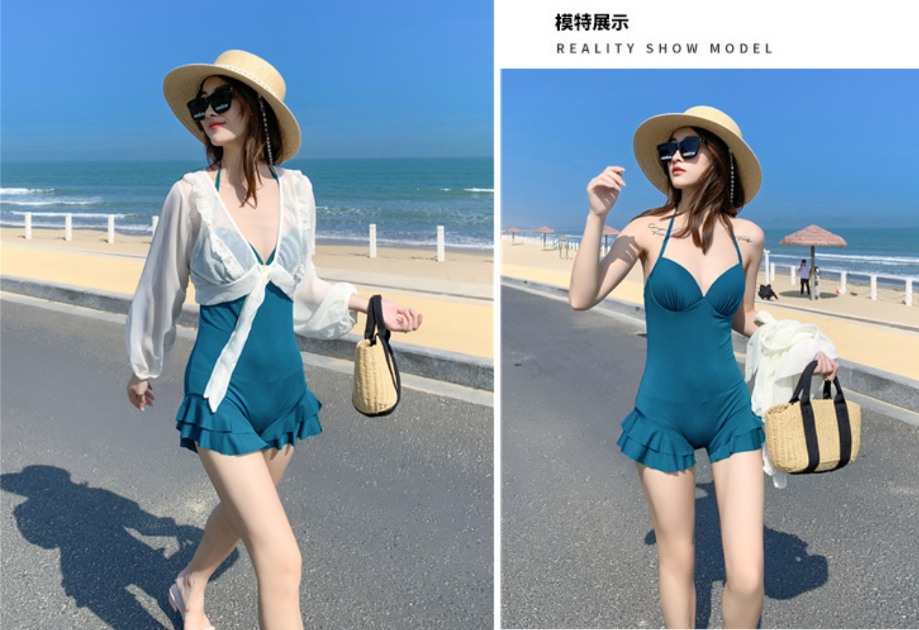 ✨Bộ đồ bơi bikini nữ 1 mảnh giấu bụng tôn dáng đi tắm biển kèm áo ren trắng khoác ngoài chống nắng - B. 04