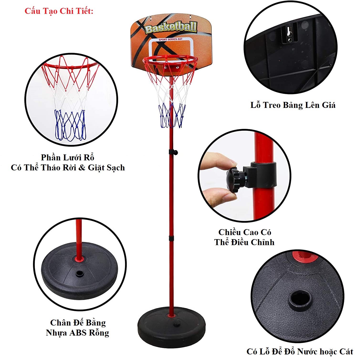 Đồ chơi bóng rổ cho trẻ em có Chân đế bộ bóng rổ được làm từ nhựa ABS chịu lực cực tốt, thân Bộ Bóng rổ được làm từ thép chống gỉ, có ren bắt vít – sản phẩm an toàn cho mọi lứa tuổi.