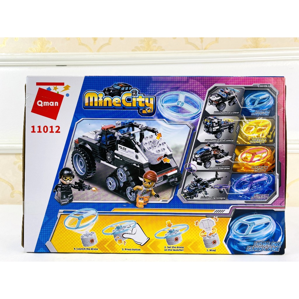 Thông tin sản phẩm: Đồ chơi - Bộ đồ chơi xếp hình mô hình xe cảnh sát Hawkeye Crawler 11012 - QMAN - Kích thước: 32.5x22x6cm - Chất liệu: Nhựa ABS - Sản phẩm của