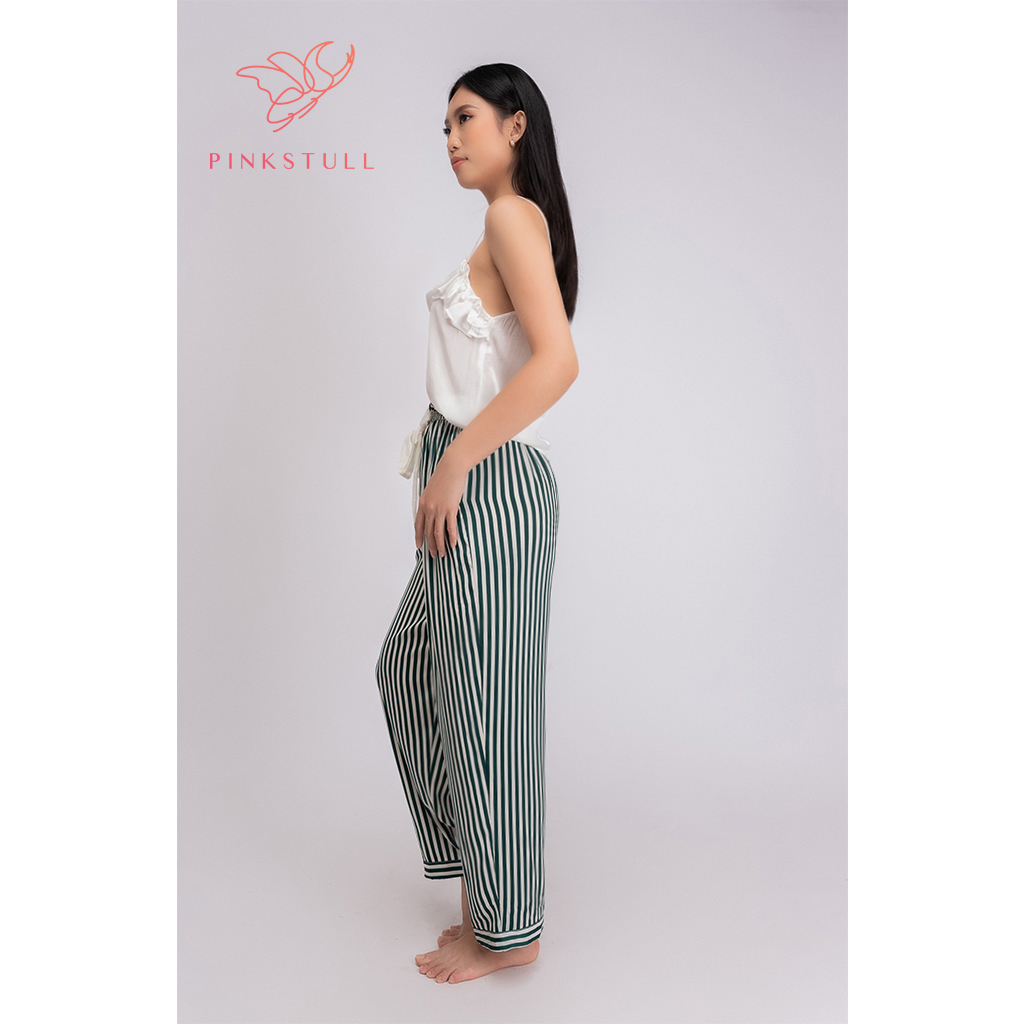 ✨Bộ đồ ngủ hai dây dài Pink Stull quần sọc xanh lá- áo trắng bèo