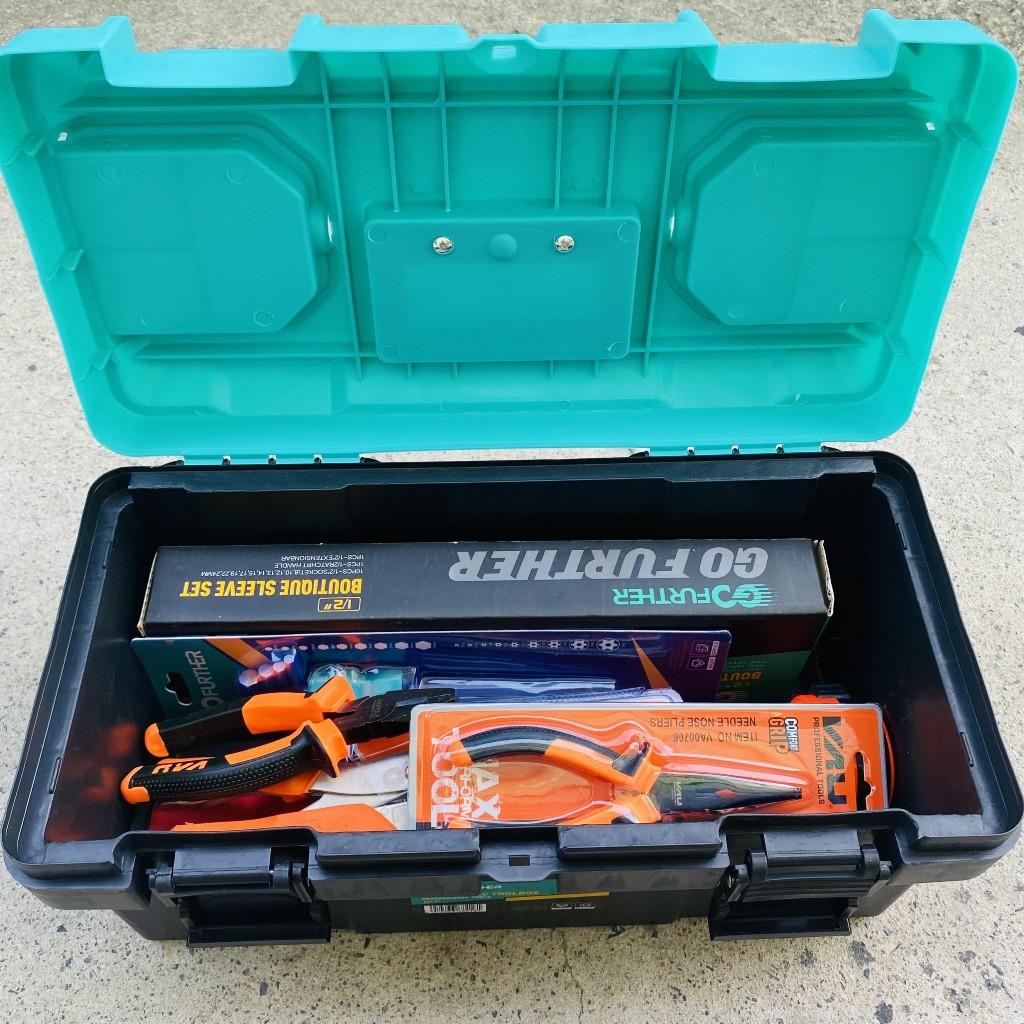 ✨Bộ dụng cụ 46 món đồ sửa chữa xe máy, máy móc: hộp đựng đồ, cle, mỏ lết, lục giác, tuýp, tô vít.GF46
