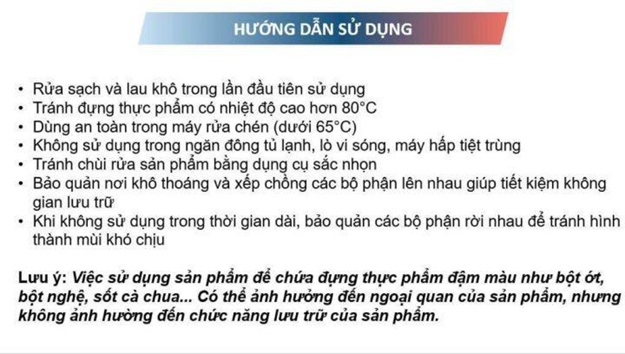 • Tránh đựng thực phẩm có nhiệt độ cao hơn 80°C
