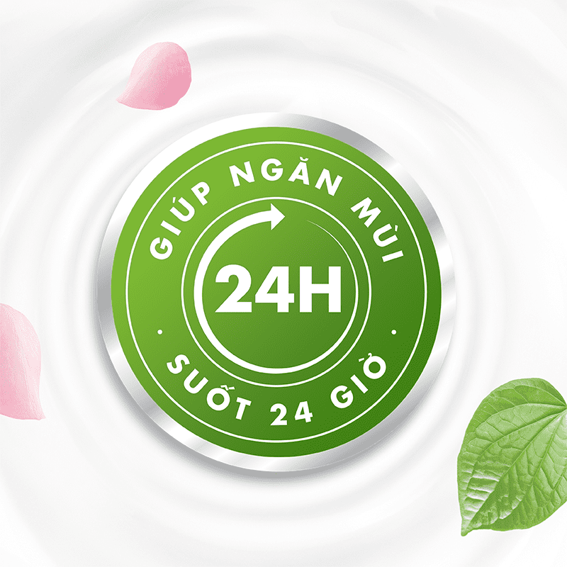- Thành phần chiết xuất từ lá trầu không và hoa hồng ngăn mùi khó chịu suốt 24 giờ.