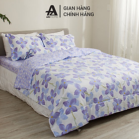 Bộ Ga Trải Giường Mền Chần Bông 5 Món Hyacinth Flowers Mềm Mại 100% Cotton Tự Nhiên A2Z Home những cánh hoa mang sắc xanh tím lạ mắt , giúp phòng ngủ của bạn thật