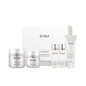 Bộ sản phẩm gồm: Kem dưỡng Ohui Extreme White Cream 50ml + 20ml Sữa rửa mặt Extreme White Foam 40ml Sữa dưỡng Extreme White Emulsion 20ml Nước hoa hồng Extreme White Skin Solftener 20ml Thành
