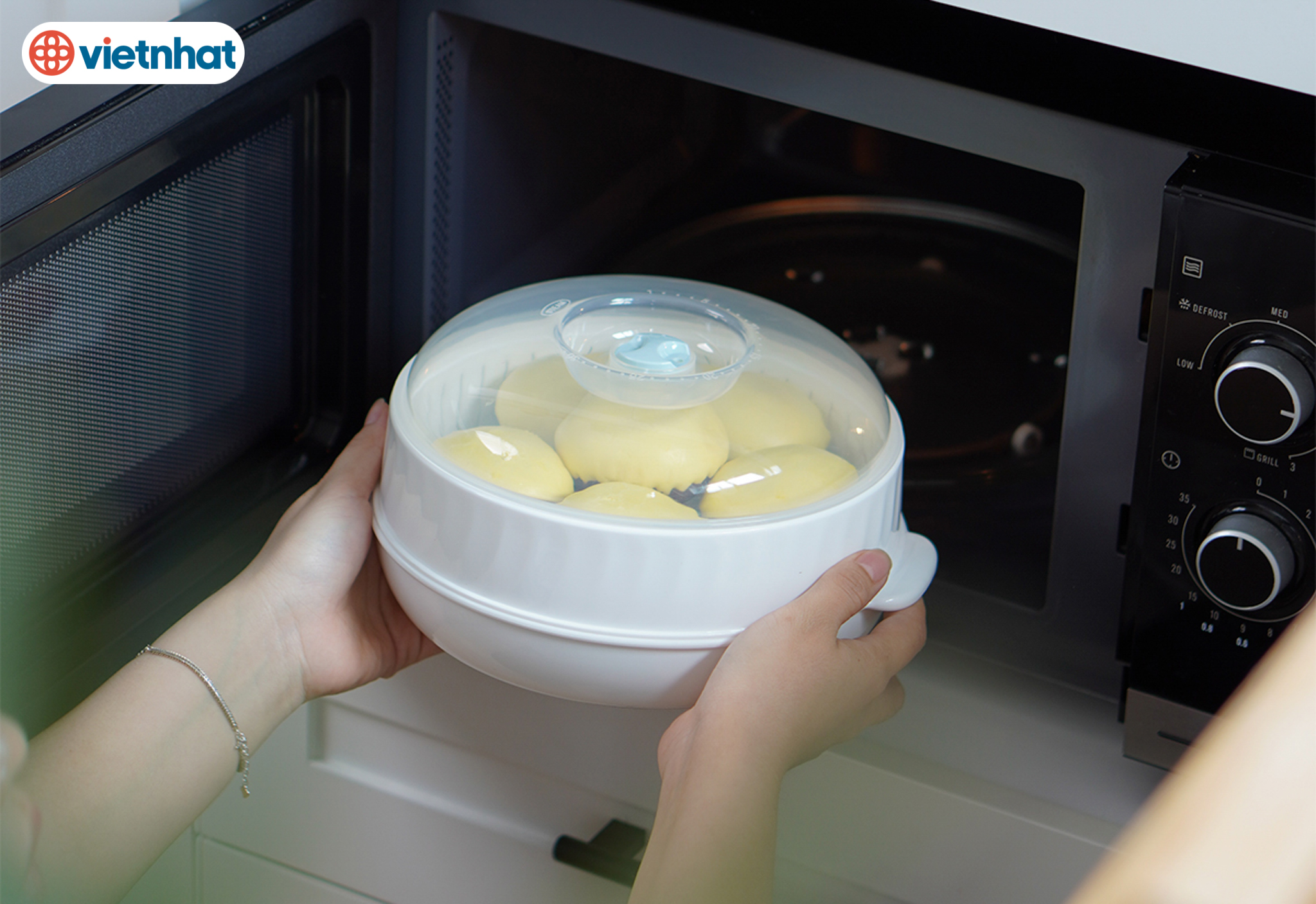 Bộ khay hấp lò vi sóng 2 tầng nhựa VIỆT NHẬT - Hấp thực phẩm, hâm nóng thức ăn
