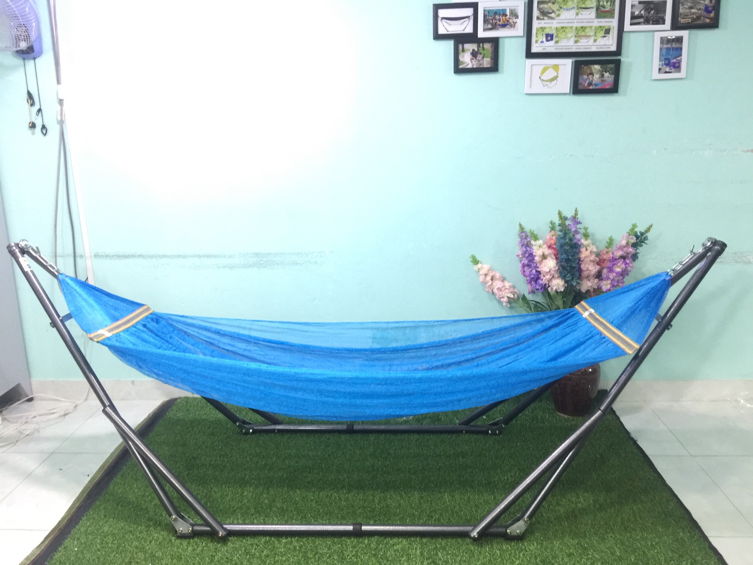 Thông tin sản phẩm võng xếp Chất liệu: (dung sai +-5%) · Ống thép, sơn tĩnh điện · Đường kính 27.0mm, chiều dày 1.1mm Mô tả chi tiết: · Võng xếp gọn, cơ động, có