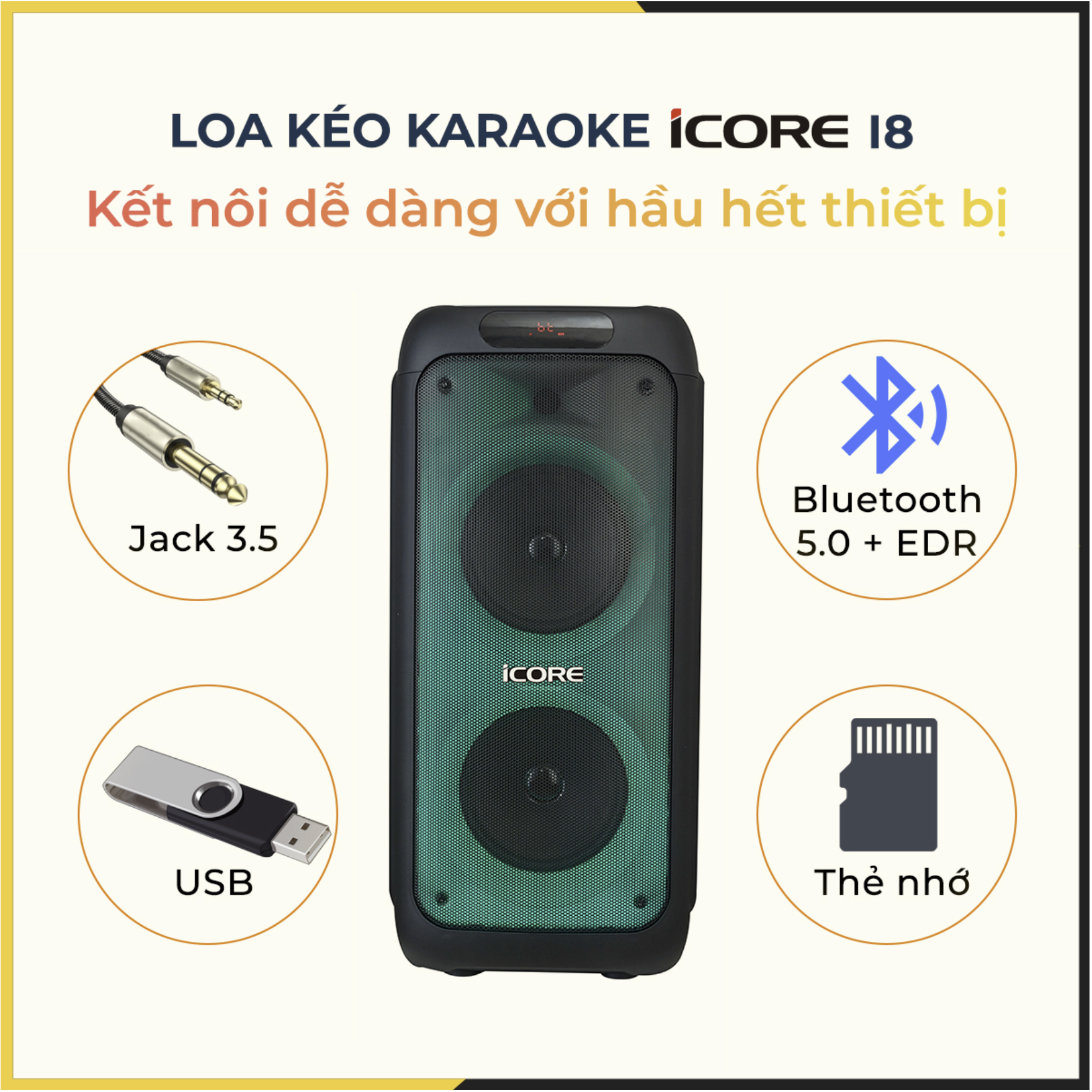 Bất kể bạn dự định sử dụng Loa kéo Karaoke iCore i8 với nguồn phát phổ biến nào, chiếc loa cũng sẵn sàng để đáp ứng hầu hết mọi tình huống sử dụng:
