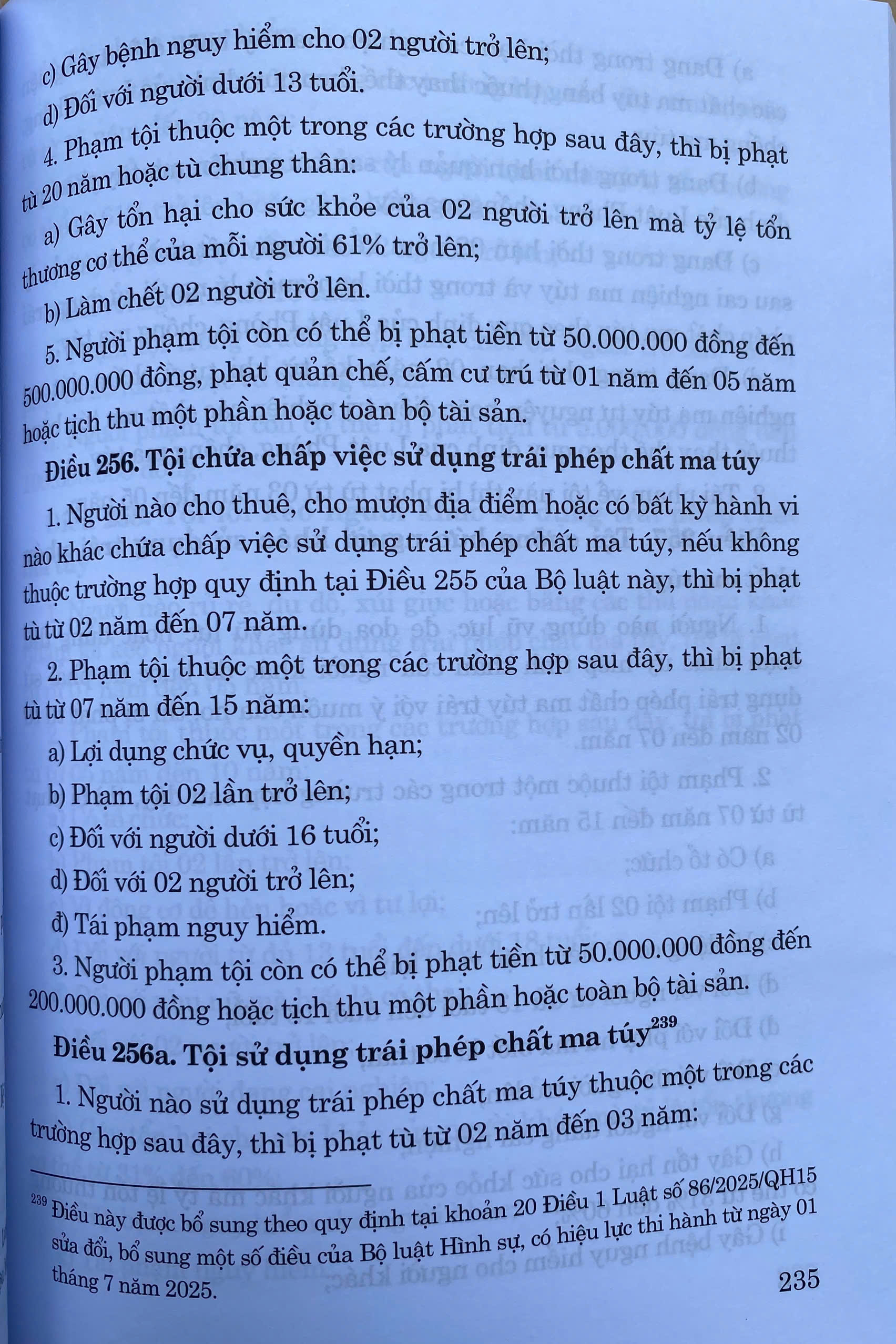 Mua tại TiktokTại Kỳ họp thứ 9 Quốc hội nước Cộng hòa xã hội chủ nghĩa Việt Nam khóa XV đã thông qua Luật số 86/2025/QH15 ngày 25 tháng 6 năm 2025 của Quốc hội ban hành Luật sửa đổi, bổ sung một số điều của Bộ luật Hình sự số 100/2015/QH13 đã được sửa đổi, bổ sung một số điều theo Luật số 12/2017/QH14 và Luật số 59/2024/QH15. Luật có hiệu lực áp dụng từ ngày 01 -07-2025