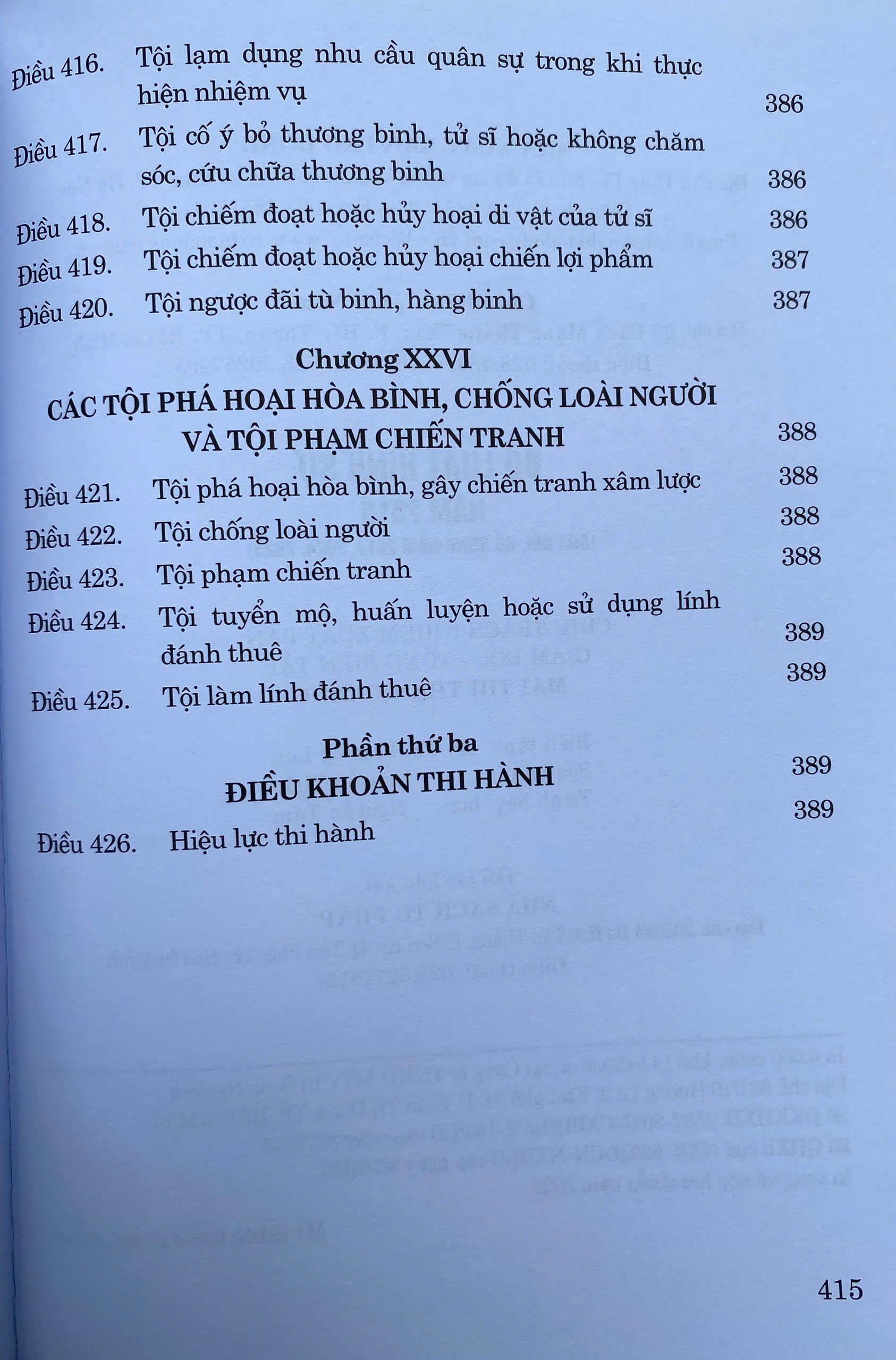 Bộ Luật Hình Sự Năm 2015 ( Sửa Đổi, Bổ Sung Năm 2017, 2024, 2025) Bộ luật gồm có 26 chương, 426 điều.