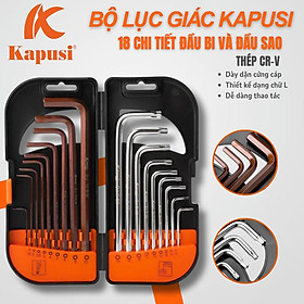 ✨Bộ Lục Giác 18 chi tiết đầu bi và đầu sao KAPUSI TOOLS Nhật Bản k0420