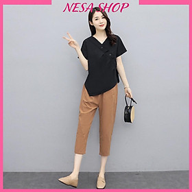 Bộ mặc nhà nữ, chất liệu Đũi mát mẻ, thấm hút mồ hôi, đồ bộ mặc nhà, đồ bộ trung niên nữ.