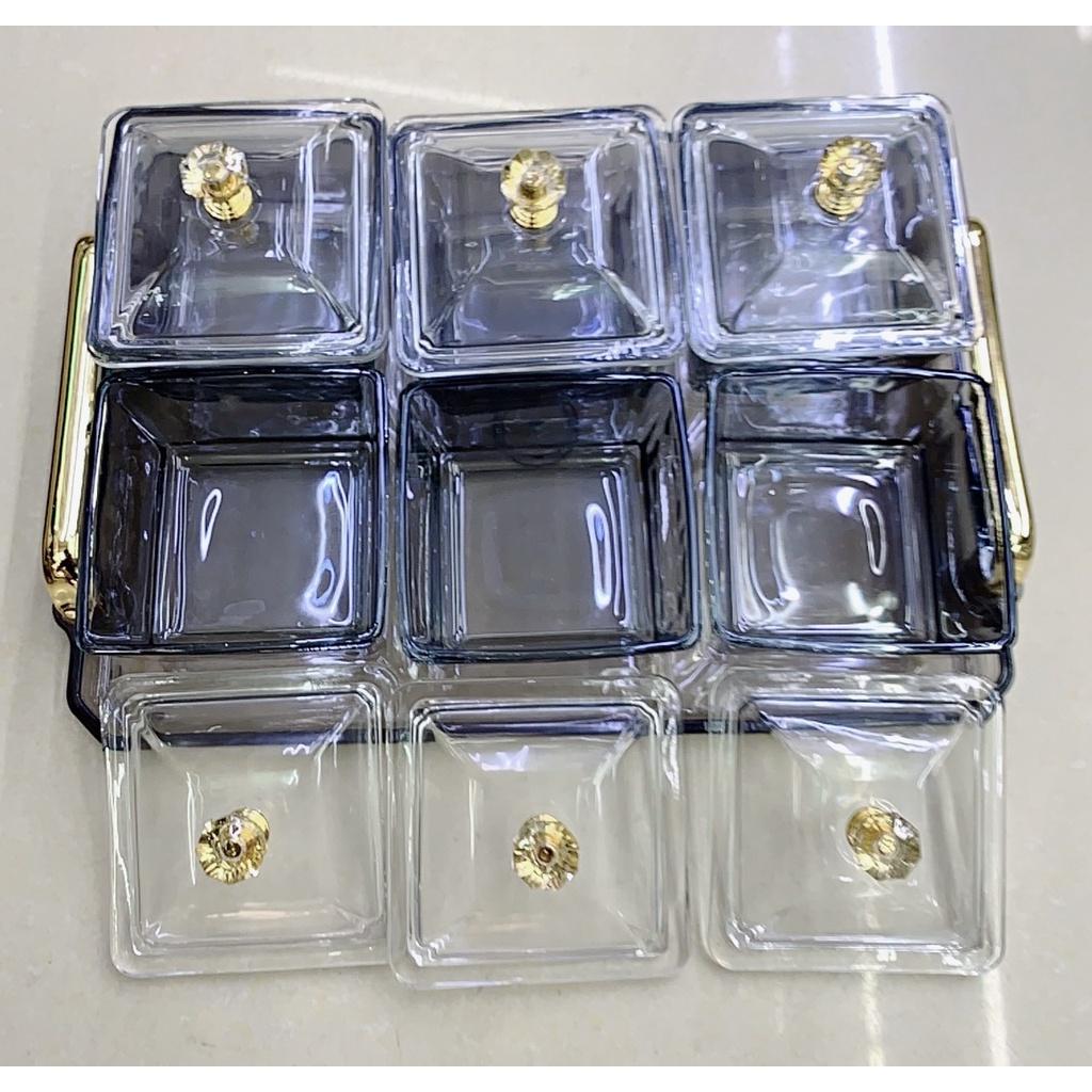 ✨Bộ Mứt Thủy Tinh Chữ Nhật Decor Siêu Xinh | Khay bánh kẹo đựng hoa quả mứt tết 6 ngăn vuông có nắp - thố thủy tinh Cao Cấp