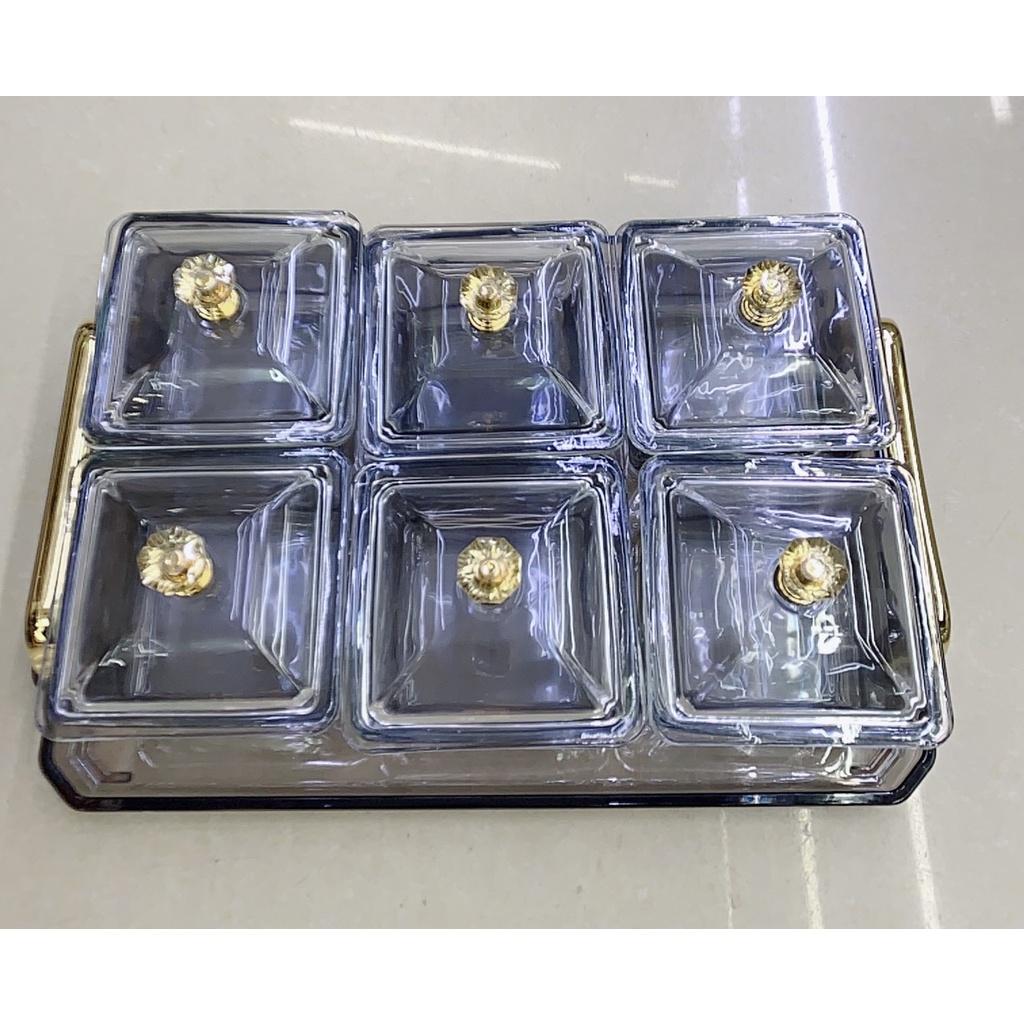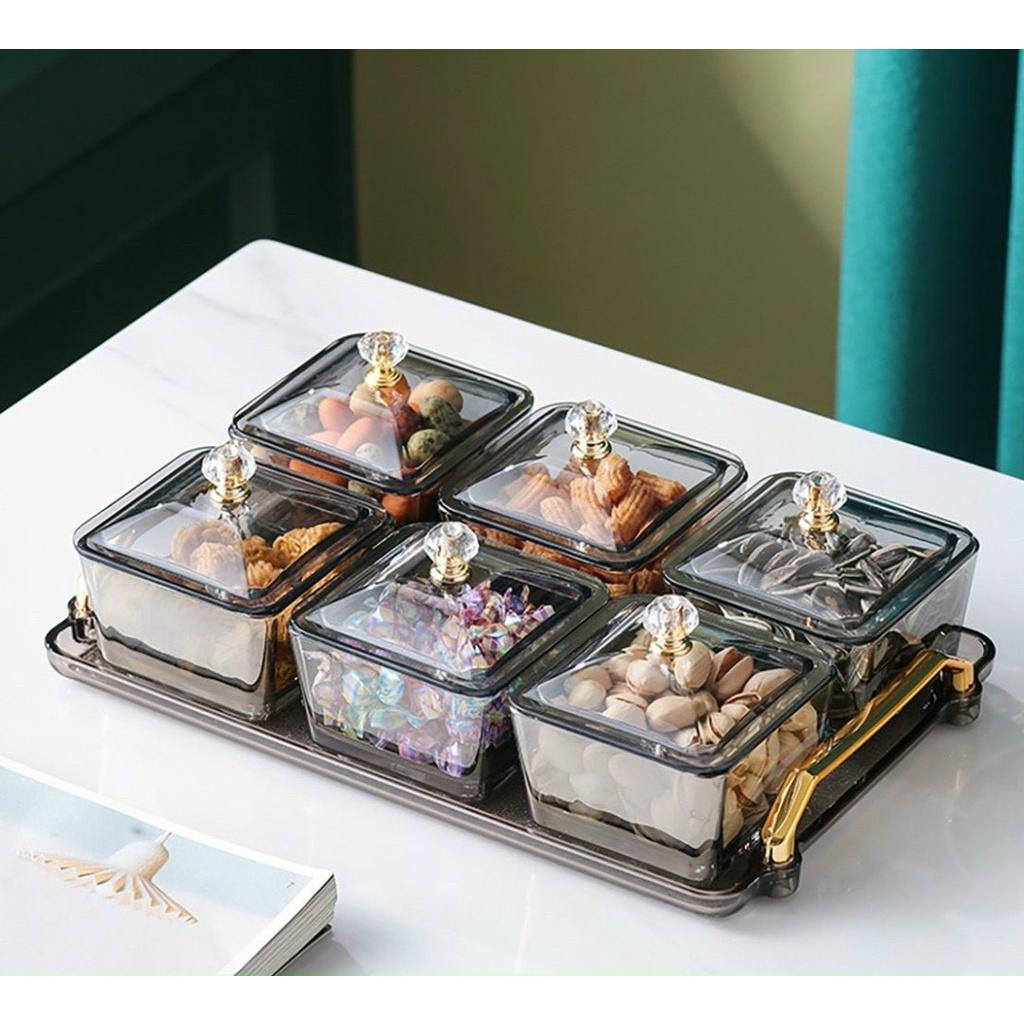 Bộ khay mứt thuỷ tinh 6 hũ cao cấp