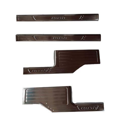 Bộ sản phẩm gồm 4 chi tiết cho 4 bậc cửa xe, có sẵn keo 3M ở mặt sau sản phẩm, rất chắc chắn