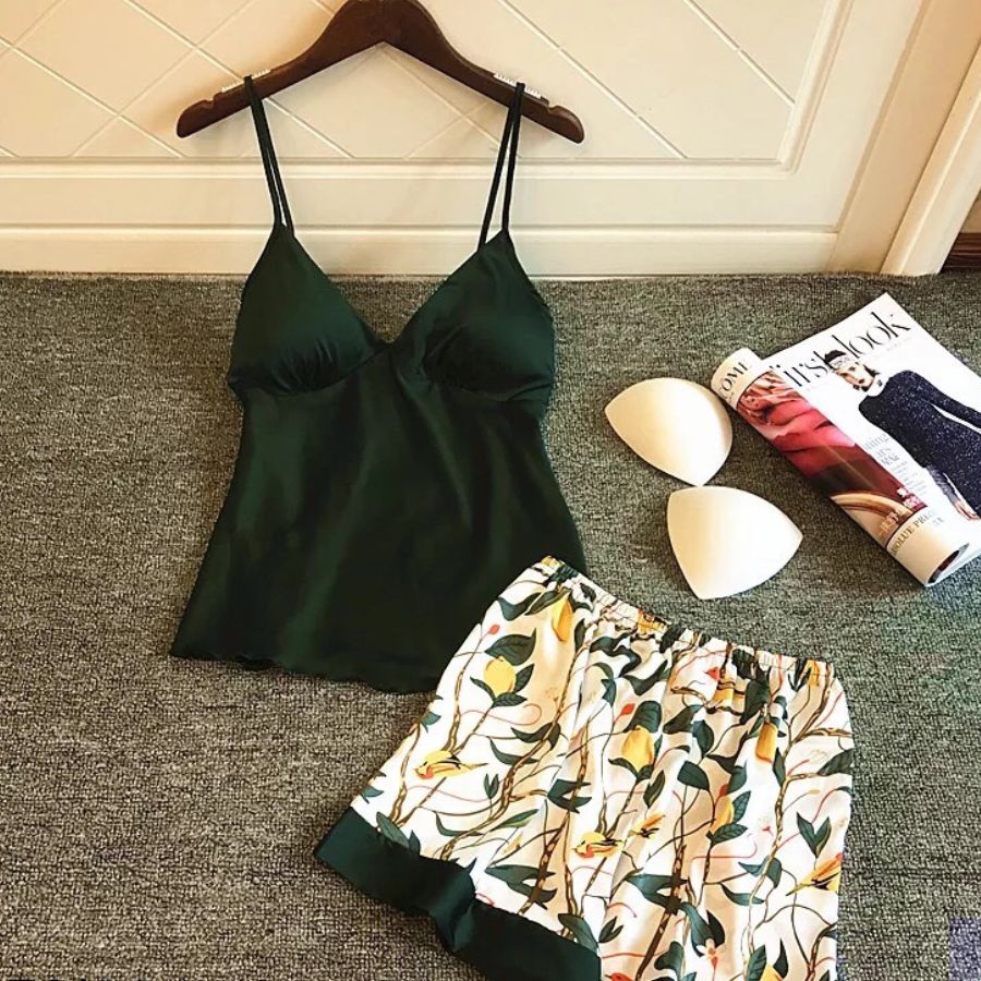 Bộ Đồ Ngủ Mặc Nhà Pajamas Lụa Họa Tiết Hisexy