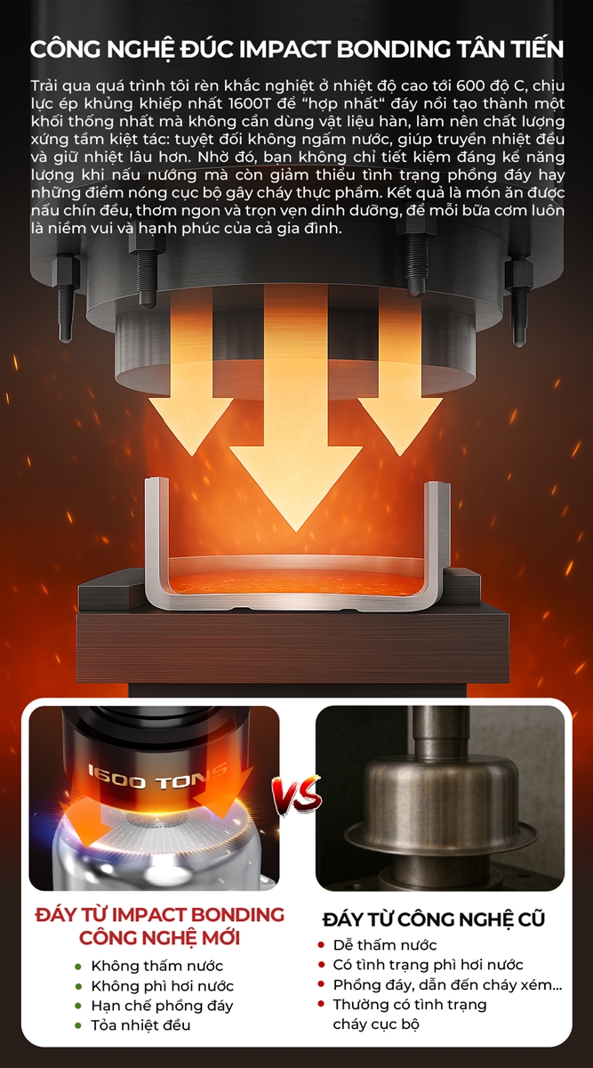 - Công nghệ 3 lớp nguyên khối dẫn nhiệt nhanh, giữ nhiệt tốt, tỏa nhiệt đều giúp thức ăn chín đều, bảo toàn vitamin và khoáng chất trong quá trình đun nấu, cho món ăn