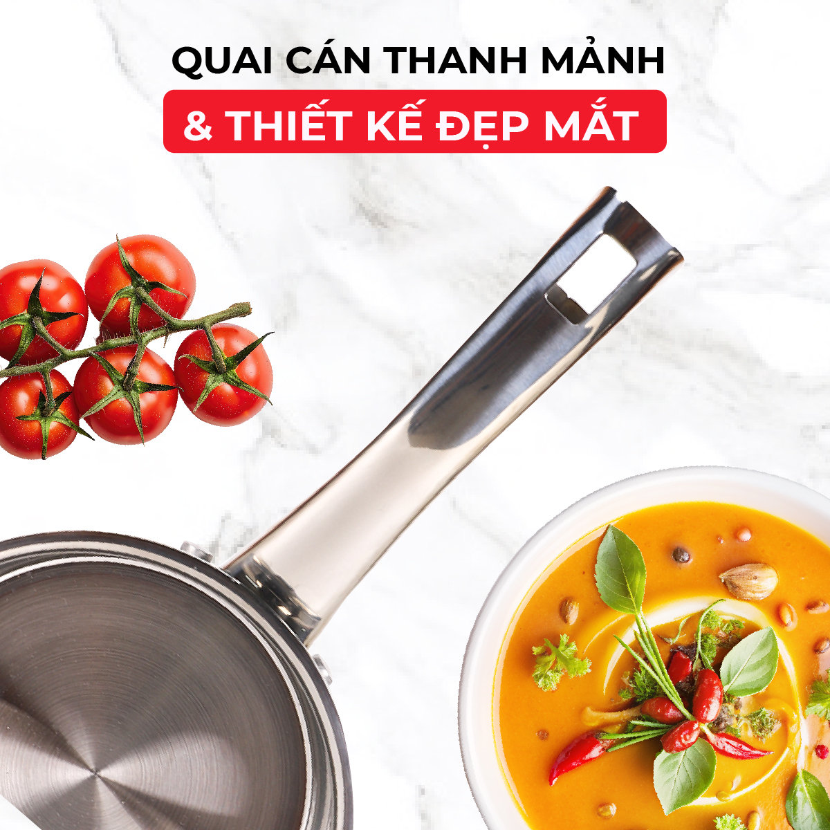 - Công nghệ 3 lớp nguyên khối dẫn nhiệt nhanh, giữ nhiệt tốt, tỏa nhiệt đều giúp thức ăn chín đều, bảo toàn vitamin và khoáng chất trong quá trình đun nấu, cho món ăn