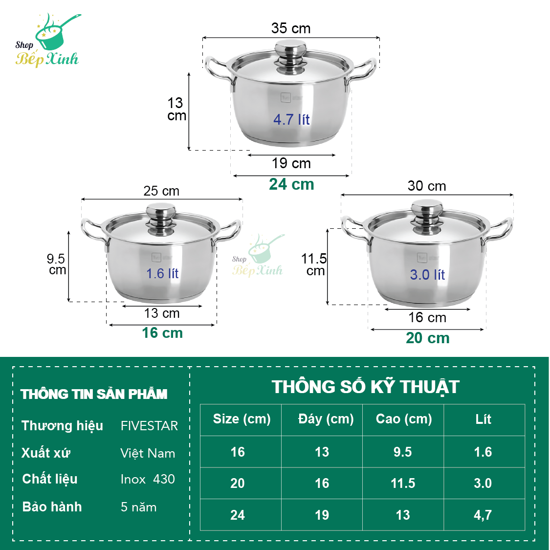 Mua tại TiktokBộ Nồi Inox 3 Đáy Nắp Inox Fivestar Tặng 2 Muỗng Canh được làm từ chất liệu inox 430 sáng bóng, bền đẹp, ít bị oxy hóa, đảm bảo an toàn cho sức khỏe người sử