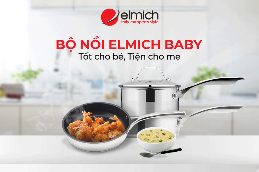 Bộ sản phẩm Elmich Baby sở hữu diện mạo sang trọng, chuẩn châu Âu với chất liệu inox sáng bóng.