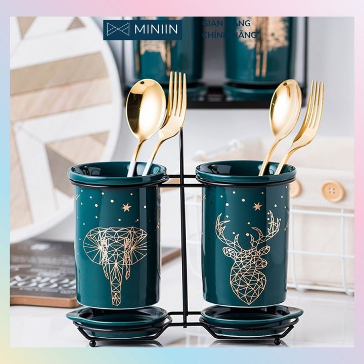 ✨Bộ Ống Đựng Đũa Sứ Đựng Đũa, Thìa, Muỗng Cao Cấp Kèm Khung Thép Xuất Nhật- Sang Trọng - Hàng Loại 1 - Chính Hãng MINIIN