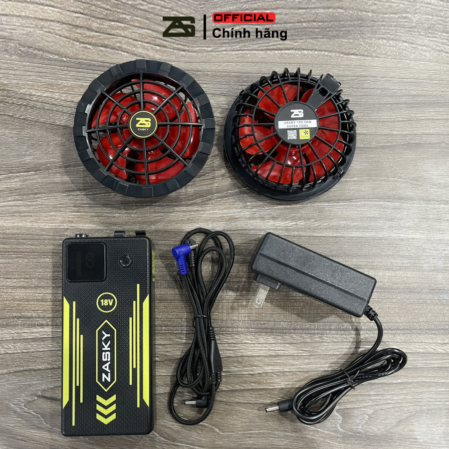 BỘ PHỤ KIỆN GẮN ÁO ĐIỀU HÒA ZASKY NHẬT BẢN 1 PIN + 2 QUẠT + 1 DÂY NỐI + 1 SẠC LÀ ĐƠN VỊ PHÂN PHỐI ĐẠT TIÊU CHUẨN PSE VỚI DÒNG PIN ZASKY