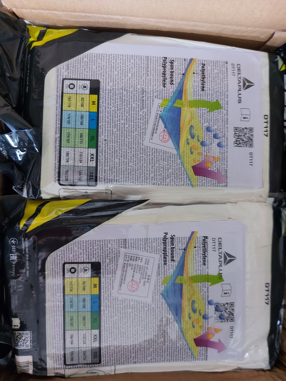 QUẦN ÁO CHỐNG HÓA CHẤT DELTAPLUS DT117 - Chất liệu: Vải không dệt DELTATEK 5000 (70% polypropylene + 30 % polyethylene) - Chống tất cả các loại bụi, vi khuẩn độc hại và hóa chất