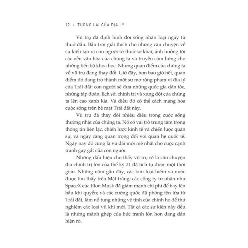 Bộ Sách Tù Nhân Của Địa Lý và Tương Lai Của Địa Lý của Tim Marshall, phát hành bởi NXB Thông Tấn (2024) và NXB Hội Nhà Văn (2020), là cặp đôi hoàn hảo khám phá địa chính trị qua lăng kính truyền thống và tương lai. Tù Nhân Của Địa Lý phân tích cách núi, sông, và biển định hình lịch sử và chính trị hiện đại, khẳng định địa lý là “nhà tù” không thể thoát khỏi. Tương Lai Của Địa Lý mở rộng tầm nhìn lên không gian, dự đoán cuộc chạy đua quyền lực giữa các quốc gia và công ty tư nhân. Với hơn 25 năm kinh nghiệm báo chí, Marshall mang đến những phân tích sâu sắc, dễ hiểu, và đầy tính tiên tri.
