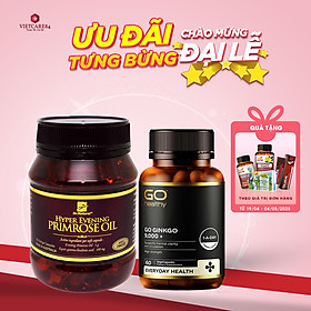 BỘ SẢN PHẨM HỖ TRỢ GIẤC NGỦ CHO PHỤ NỮ TUỔI TRUNG NIÊN GIÚP CẢI THIỆN TÌNH TRẠNG ĐAU ĐẦU, MẤT NGỦ, GIÚP NGỦ NGON, GỒM : + Viên uống bổ não GO GINKGO 9000+ (60 viên) - dùng 2 tháng + Viên uống nội tiết tố nữ HYPER EVENING PRIMROSE OIL (180 viên) - dùng 3 tháng I/ Viên uống bổ não GO GINKGO 9000+ Thực phẩm bảo vệ sức khỏe GO GINKGO 9000+ được sản xuất tại New Zealand giúp cải thiện trí nhớ và tăng khả năng tập trung. Với công thức 7 trong 1, bổ não ginkgoNew Zealand GO Ginkgo 9000+ kết hợp Ginkgo, Bacopa, Hawthorn hỗ trợ tăng cường hoạt động não bộ, giúp trí óc sang suốt và tập trung hơn. ĐIỂM KHÁC BIỆT CỦA VIÊN BỔ NÃO GINKGO NEW ZEALAND GO GINKGO 9000+: 1. Số 1 New Zealand, nhập khẩu nguyên hộp chính hãng. GO Ginkgo 9000+ là sản phẩm của GO Healthy, hãng dược phẩm được khách hàng tin dùng nhất tại New Zealand 2. Công thức tối ưu nhất. Bạn khó có thể tìm được một sản phẩm bổ não kết hợp giữa hàm lượng Ginkgo cao (chiết xuất Ginkgo 9000mg) với chiết xuất Rau đắng biển (Bacopa monnieri)...2000mg và chiết xuất Sâm siberian (Eleutherococus senticosus)...650mg trong một viên nang 3. Dùng tốt cho người thiểu năng tuần hoàn não, đau đầu mất ngủ, người bị tiền đình, chóng mặt, người bị tai biến mạch máu não