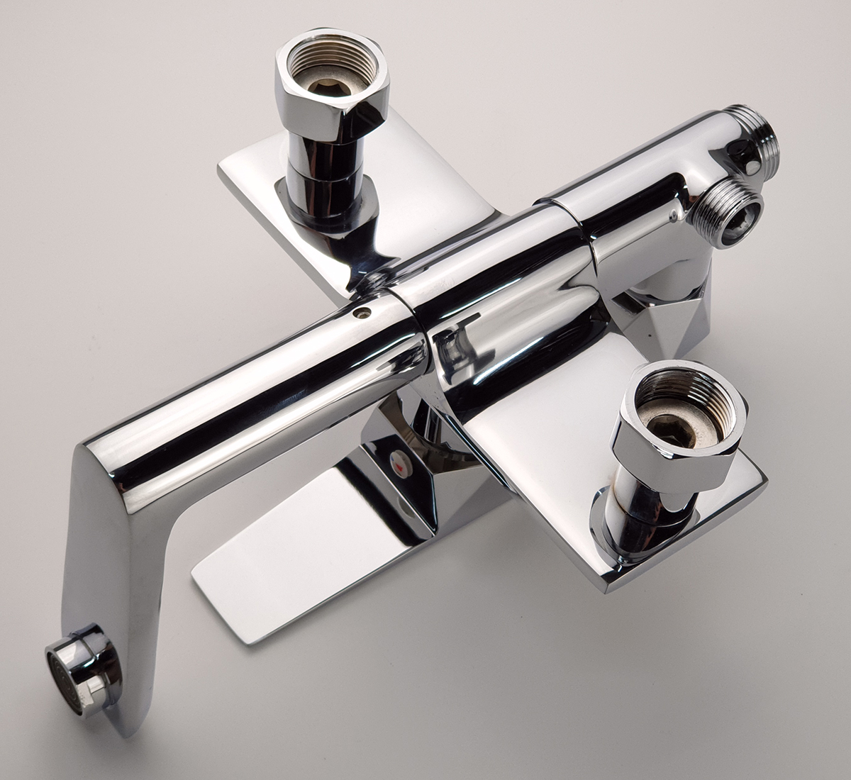 Thân vòi được thiết với hình vuông góc, mạnh mẽ. Tay mở nguồn nước và núm chuyển chế độ nằm mặt trước tiện dụng. Đặc điểm nổi trội của các sản phẩm Eurolife là nước mạ tinh xảo, sáng bóng không tì vết, mang lại sự hoàn hảo và sang trọng cho phòng tắm