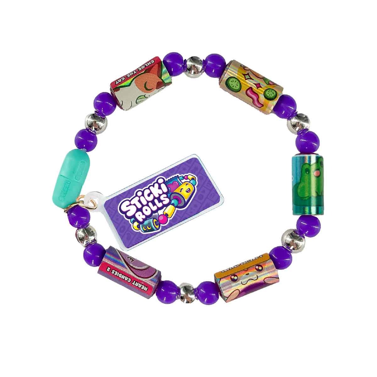 Mua tại TiktokĐồ Chơi Bộ Sưu Tập DIY Sticki Rolls SR200 Sticki Rolls là dòng sản phẩm vòng tay sưu tập sticker đến từ Hoa Kỳ. Bộ sản phẩm có tổng cộng 1200 mẫu thiết kế sticker khác nhau từ các nhà thiết kế trẻ, có tiếng trên nền tảng. Mỗi một thiết kế sticker sẽ được phối với 4 phôi dán khác nhau tạo nên đô phong phú, đa dạng phù hợp với sở thích của các nhà sưu tập từ khắp nơi trên thế giới. Với sticker Sctiki Rolls bạn có thể trang trí mọi thứ từ sổ sách, bình nước, máy tính, v.v. Bộ sưu tập có 7 Styles vòng tay khác nhau để sưu tầm với một thiết kế hiến có tỷ lệ 1/24. Sản phẩm bao gồm: