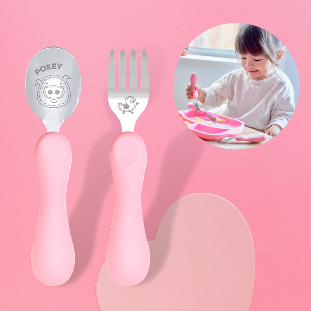 Bề mặt thìa, nĩa đươc khắc laser hình các con vật ngộ nghĩnh, đáng yêu trong gia đình Marcus & Marcus