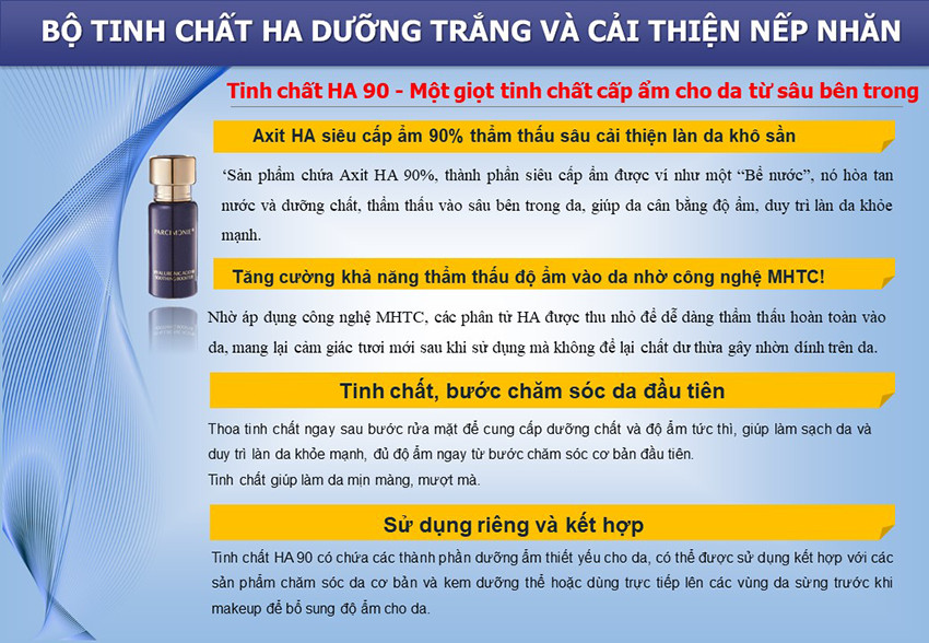 Với Parcimonie Hyaluronic Acid 90 Soothing Booster có tác dụng hiệu quả trong việc dưỡng trắng da an toàn và phù hợp với mọi loại da đồng thời nuôi dưỡng làn da khỏe mạnh, tăng độ đàn hồi và giúp da tràn đầy sức sống và cải thiện nhanh chống tình trạng khô da.