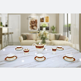 Một bộ sản phẩm bao gồm: 01 ấm, 01 đĩa ấm, 06 chén và 06 đĩa chén. Bộ sản phẩm được làm từ chất liệu gốm cao cấp, bảo đảm an toàn vệ sinh