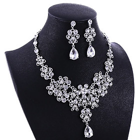 Chất liệu: 30% bạc xi bạch kim Kích thước: Dây chuyền dài 45cm, mặt dây xấp xỉ: 1,45x2,25mm Bông tai xấp xỉ: 1,6x1,4mm Bộ trang sức món hoa nạm đá BHB67 - Chất liệu: 30%