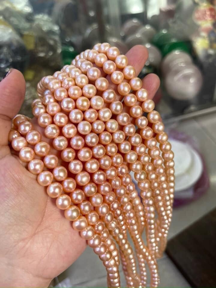 Chất liệu Ngọc Trai Màu Cam Hồng Nhẹ Bóng Rất Đẹp rất xinh và Sang ạ Món Quà Ý nghĩa dành tặng Mẹ, Vợ, Chị Em luôn ạ