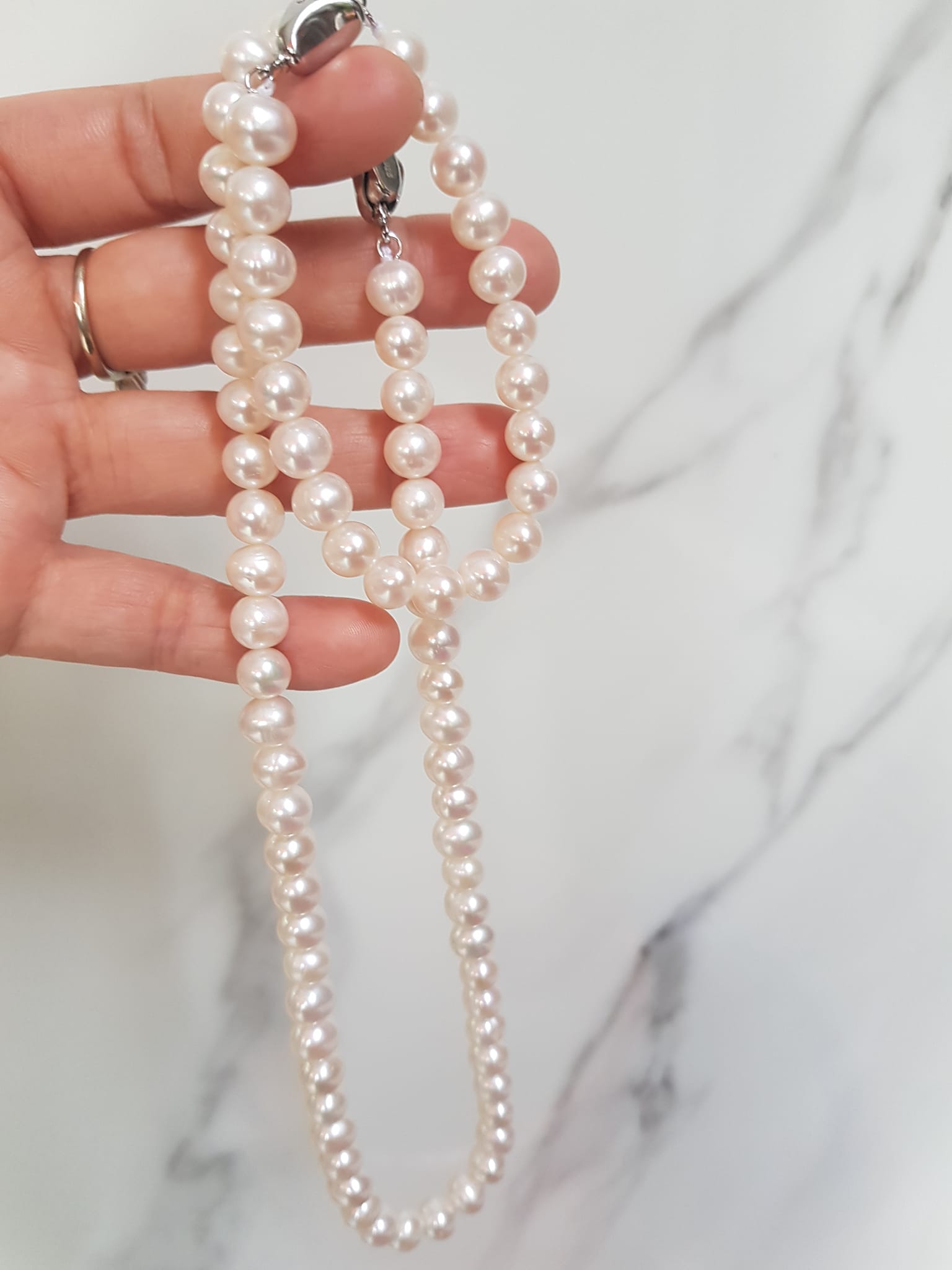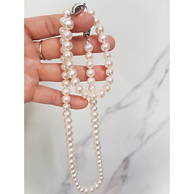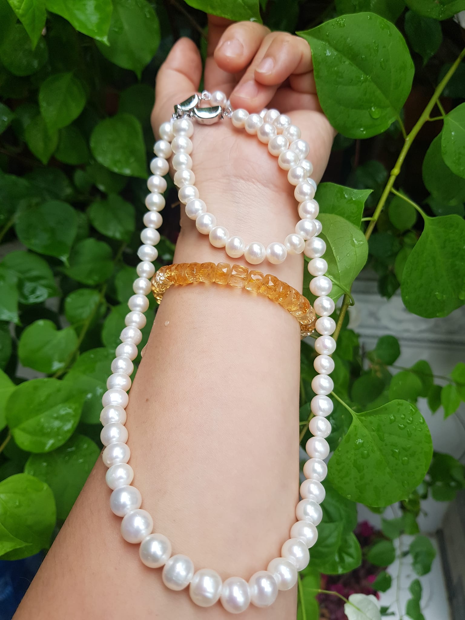 Bộ Trang Sức Ngọc Trai Trắng Bóng đẹp Size hạt 8mm có khoen Combo gồm cả vòng và Dây đeo cổ đẹp sang