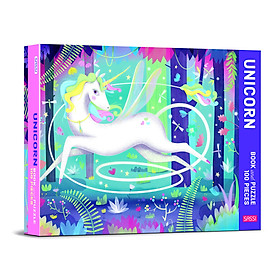 ✨Bộ tranh ghép xếp hình 100 mảnh dành cho bé kèm truyện chủ đề kỳ lân - Book & Giant Puzzle - Unicorn - 100 Pieces