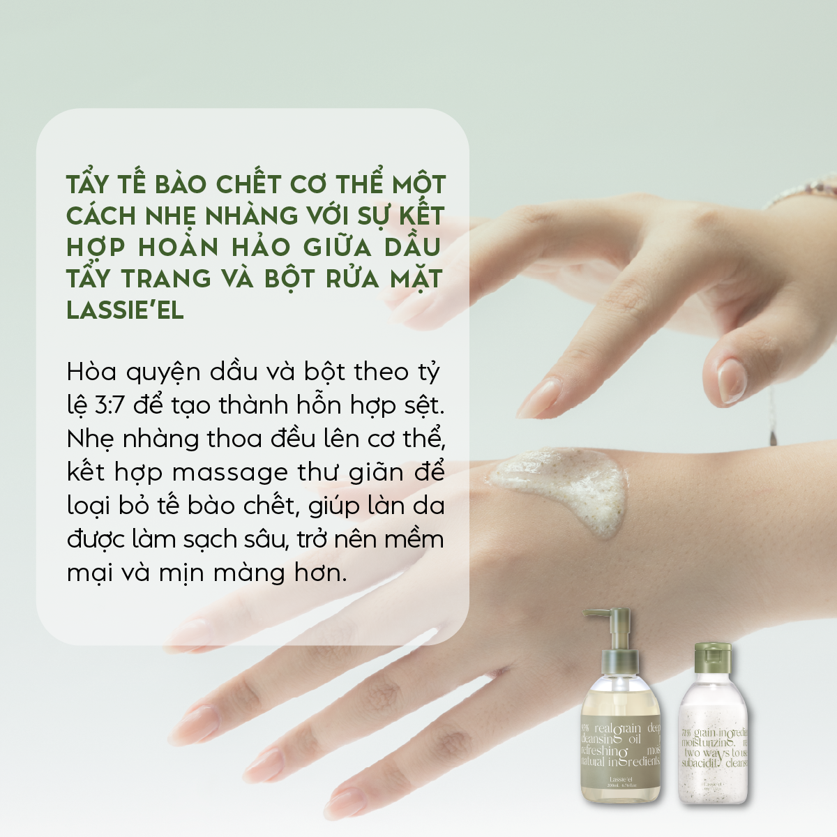 ● Bột rửa mặt và tẩy tế bào chết hằng ngày enzyme Lassie'el: Làm sạch sâu, ẩm mịn, lành tính.