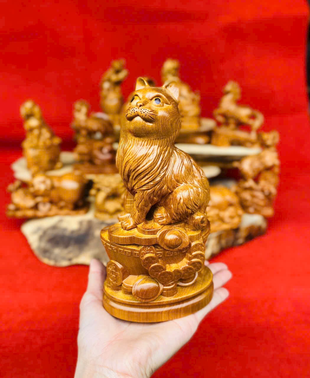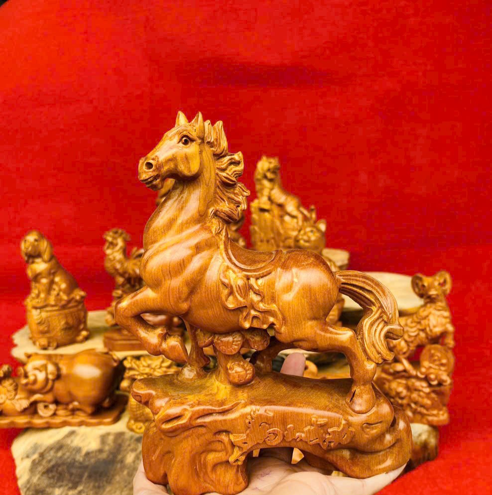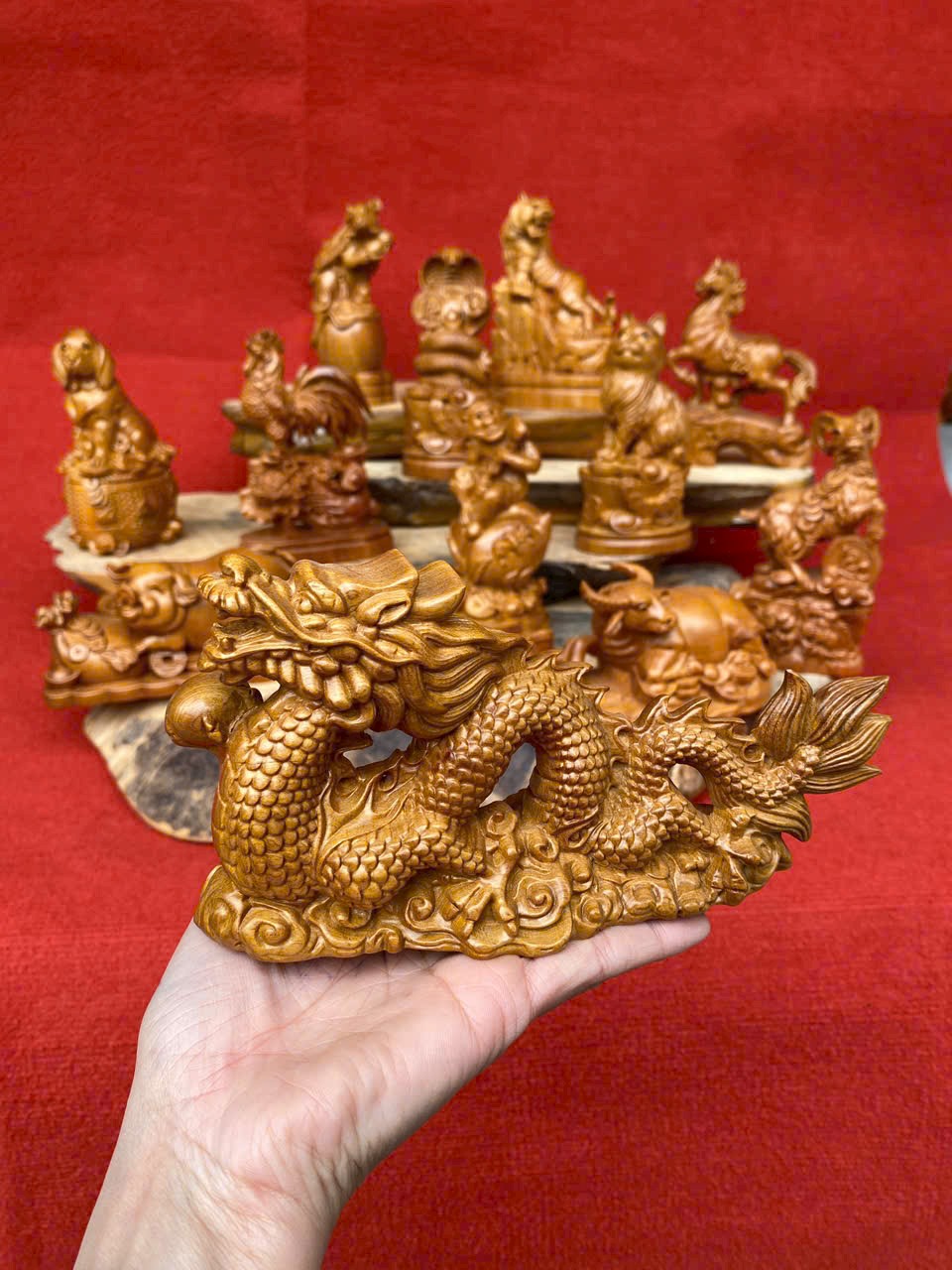 Mua tại Tiktok_ Bộ tượng 12 còn giáp phong thủy được làm bằng chất liệu gỗ bách xanh liền khối tự nhiên 100%