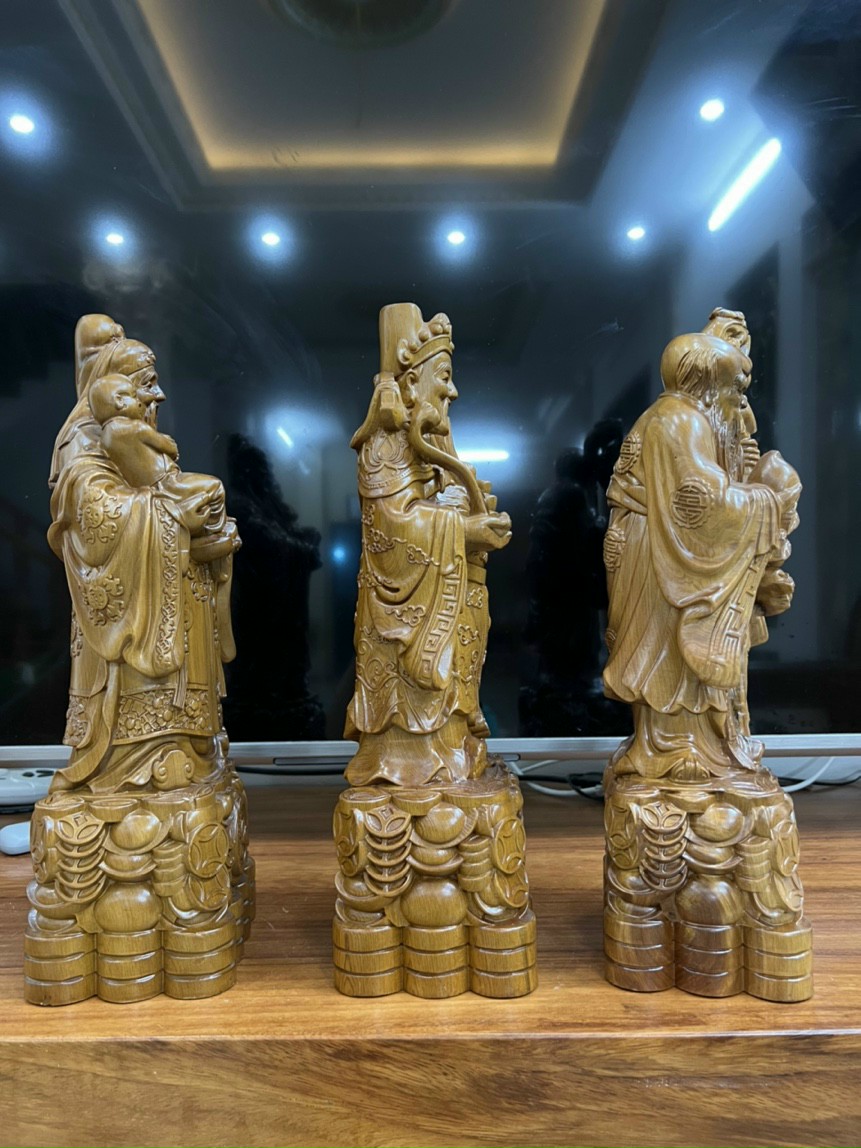 ✨Bộ tượng phật tam đa phúc lộc thọ bằng gỗ bách xanh thơm phức kt cao 40×13×11,5cm