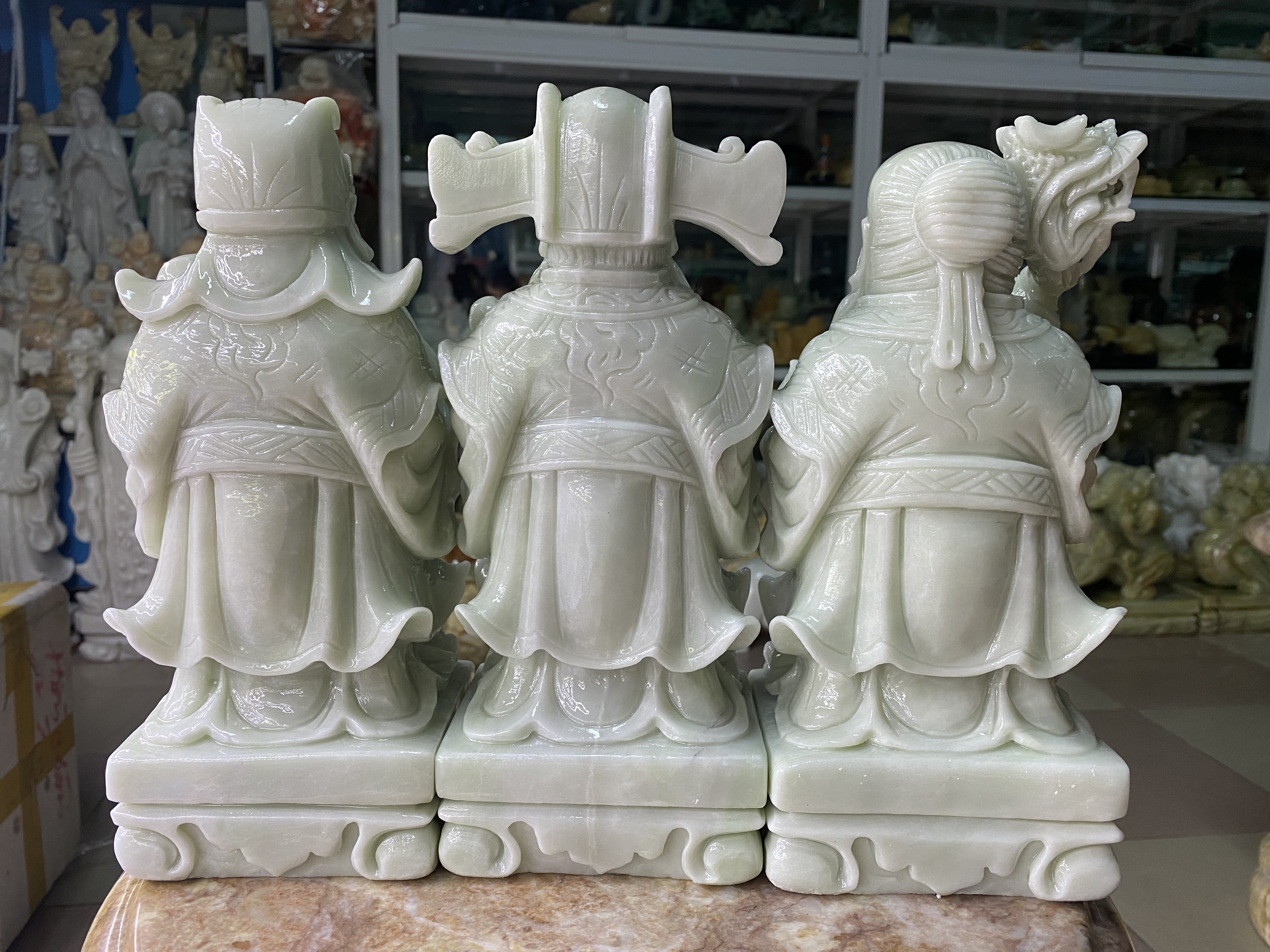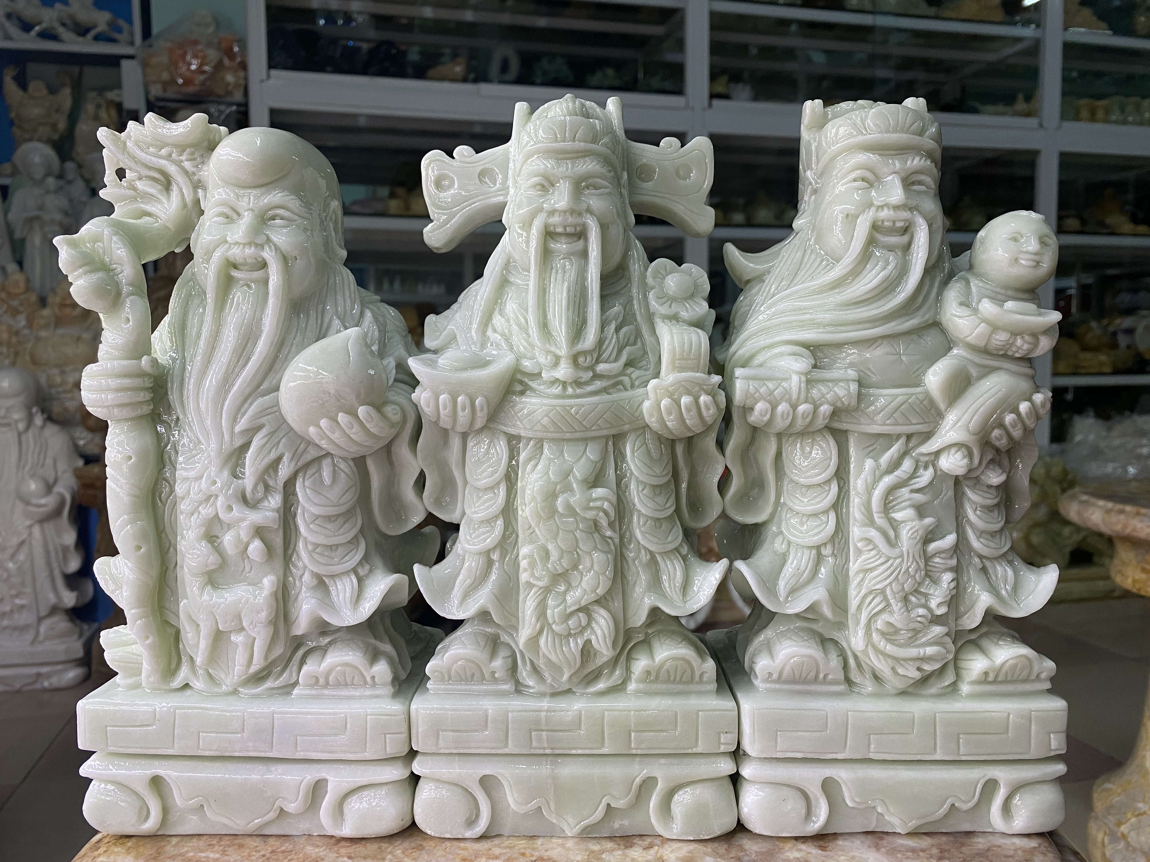 ✨Bộ Tượng Tam Đa (Phúc Lộc Thọ) Đá Cẩm Thạch Trắng Xanh - cao 25cm