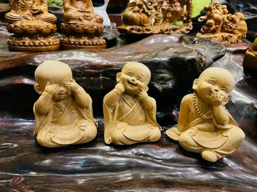 Mua tại Tiktok_ Bộ tượng tam không được làm bằng chất liệu gỗ bách xanh thơm phức liền khối tự nhiên 100%