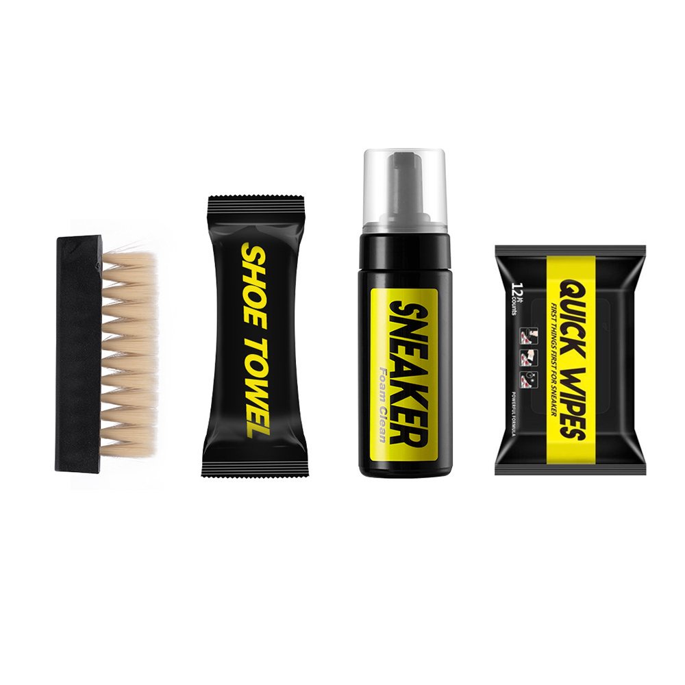 - Bộ sản gồm : 1 bình xịt tạo bọt dung tích 150ml, 1 khăn mềm, 1 bàn chải mềm, 1 túi khăn lau sneaker 12 tờ.
