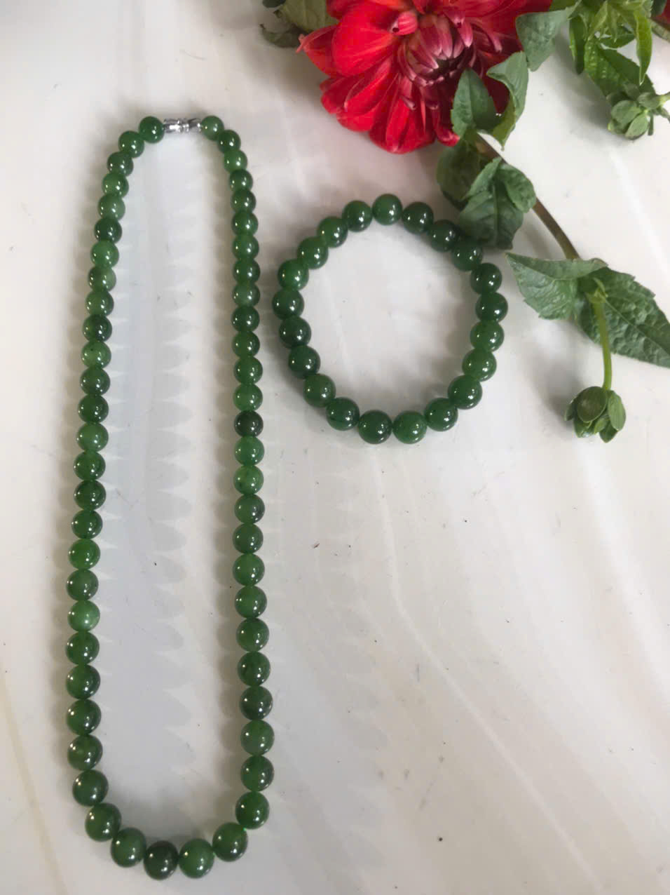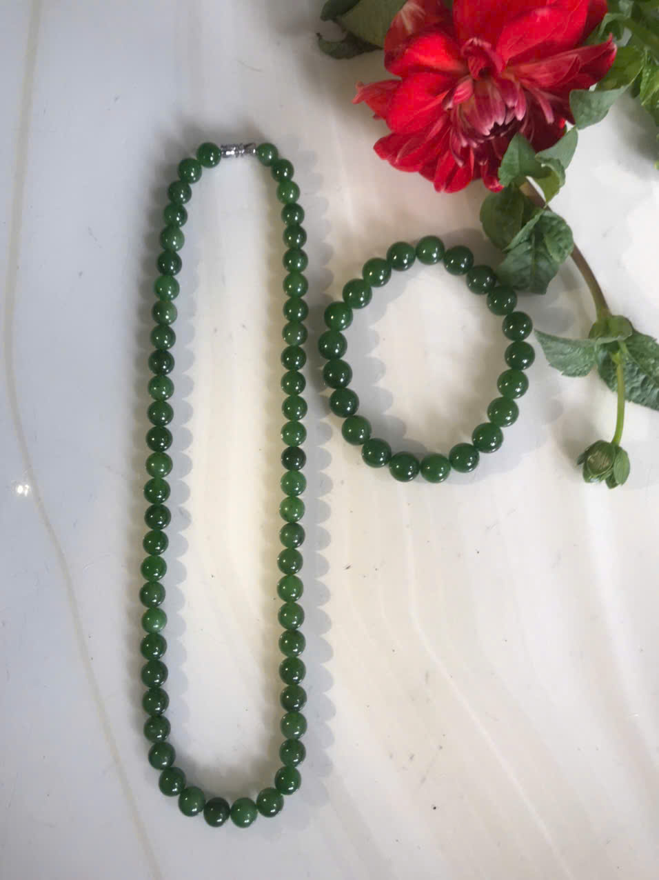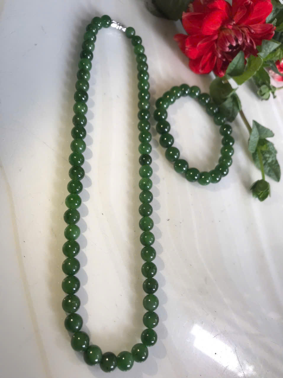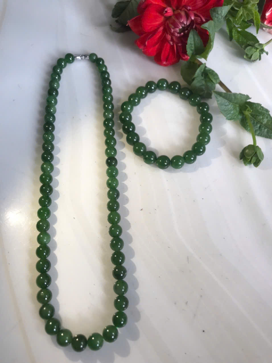 Bộ Vòng Chuỗi Đeo Cổ 8li Và Vòng Tay 9li5 Đá Ngọc Phật Xanh tự nhiên đẹp hay ngọc bích