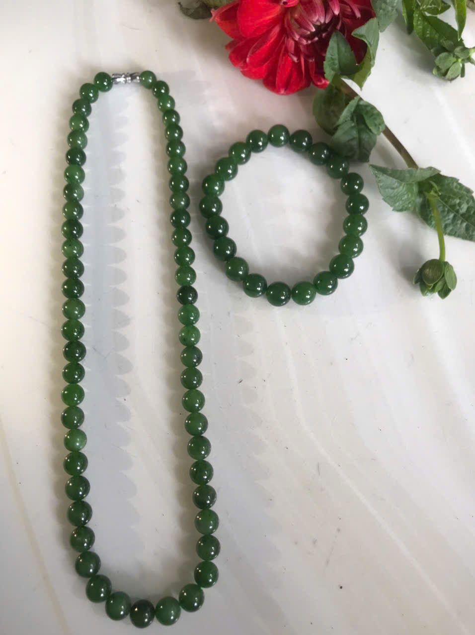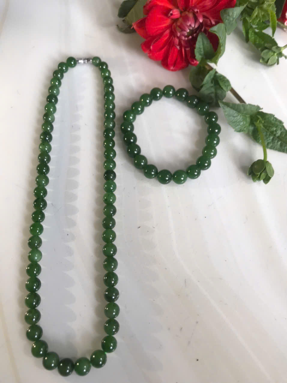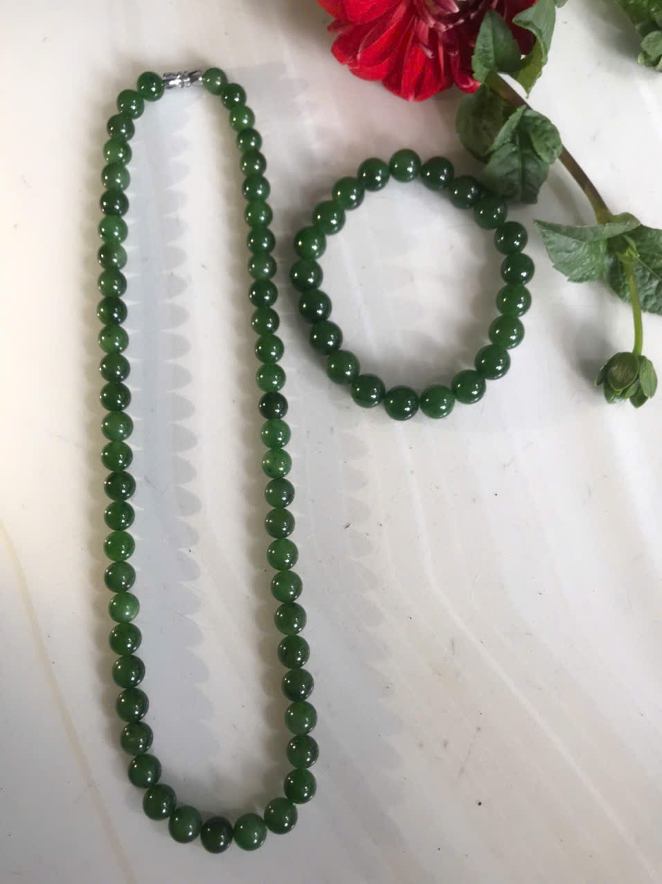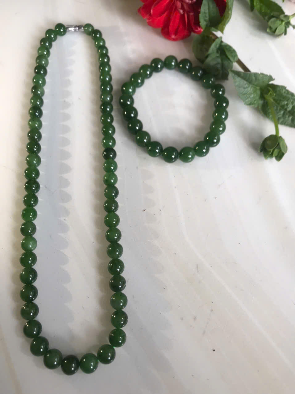 Bộ Vòng Chuỗi Đeo Cổ 8li Và Vòng Tay 9li5 Đá Ngọc Phật Xanh tự nhiên đẹp hay ngọc bích
