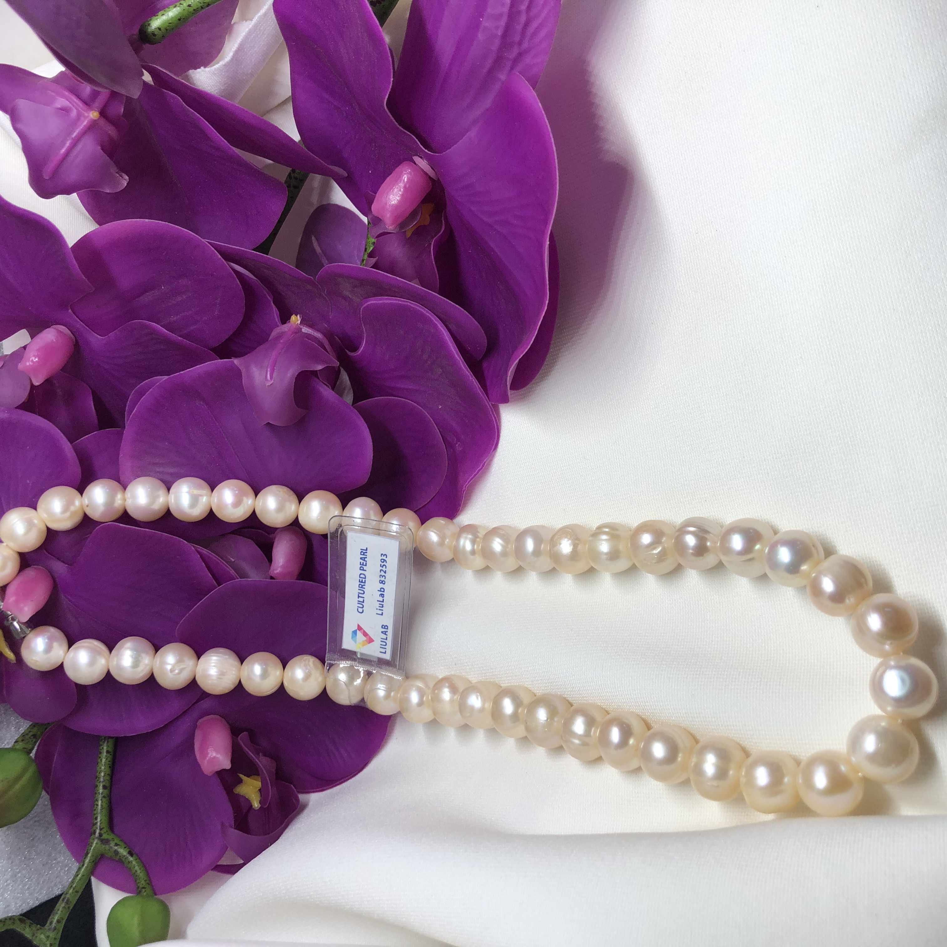 NGỌC TRAI TRẮNG 4A-BNTT009 * THÔNG TIN SẢN PHẨM: BỘ VÒNG CỔ- TAY NGỌC TRAI TRẮNG - Chất liệu: Ngọc trai nuôi tự nhiên nước ngọt - Chiều dài: 43- 48cm - Kích thước: 10mm-11mm