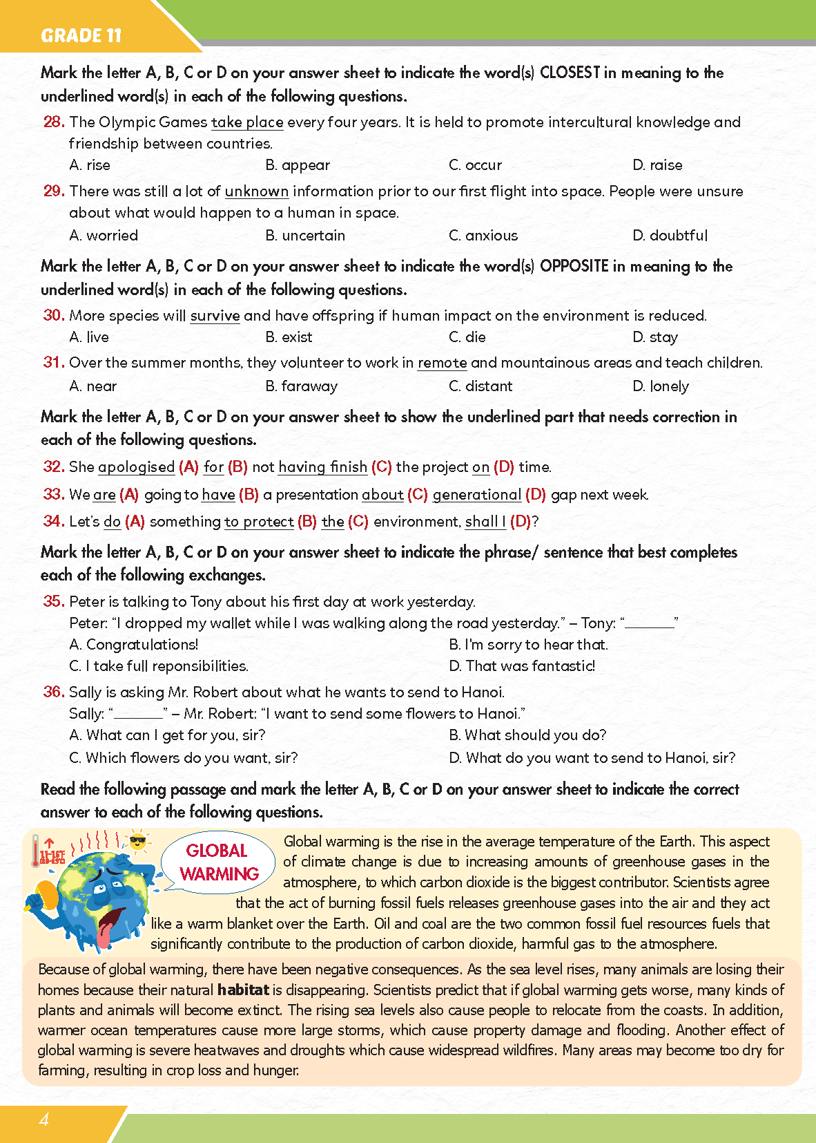 Mua tại TiktokBồi dưỡng Tiếng Anh 11 là quyển sách hữu ích dành cho học sinh lớp 11. Sách được biên soạn nhằm giúp học sinh ôn luyện kiến thức & kĩ năng tiếng Anh thông qua các bài tập trắc nghiệm, bám sát khung chương trình do Bộ Giáo Dục & Đào Tạo quy định, theo cấu trúc của đề thi tốt nghiệp trung học phổ thông. Kèm theo sách là các hợp phần có thể tải về máy tính hoặc sử dụng trực tuyến như đáp án, ứng dụng đa nền tảng & sách điện tử. Dùng mã code dưới lớp tráng bạc bìa 2 để kích hoạt là bài luyện tập tương tác.