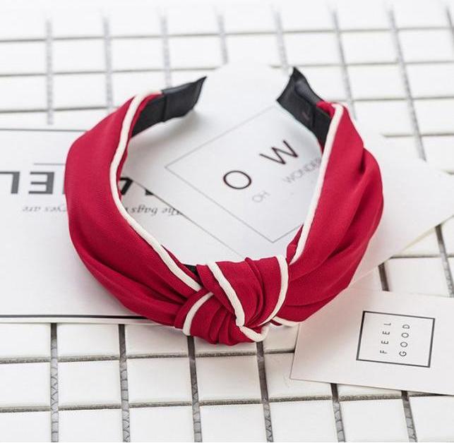 ✨Bờm cài tóc turban nữ BN33B bản to màu đỏ viên trắng
