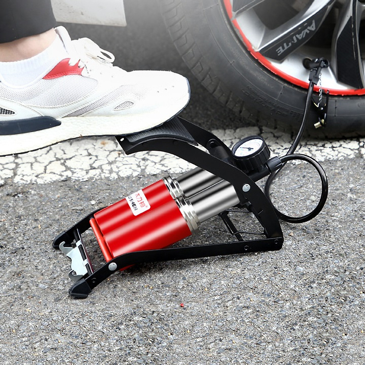 Bơm đạp chân 2 piston xi lanh cao cấp để bơm xe đạp, xe máy, ô tô, bóng, phao (BX02)